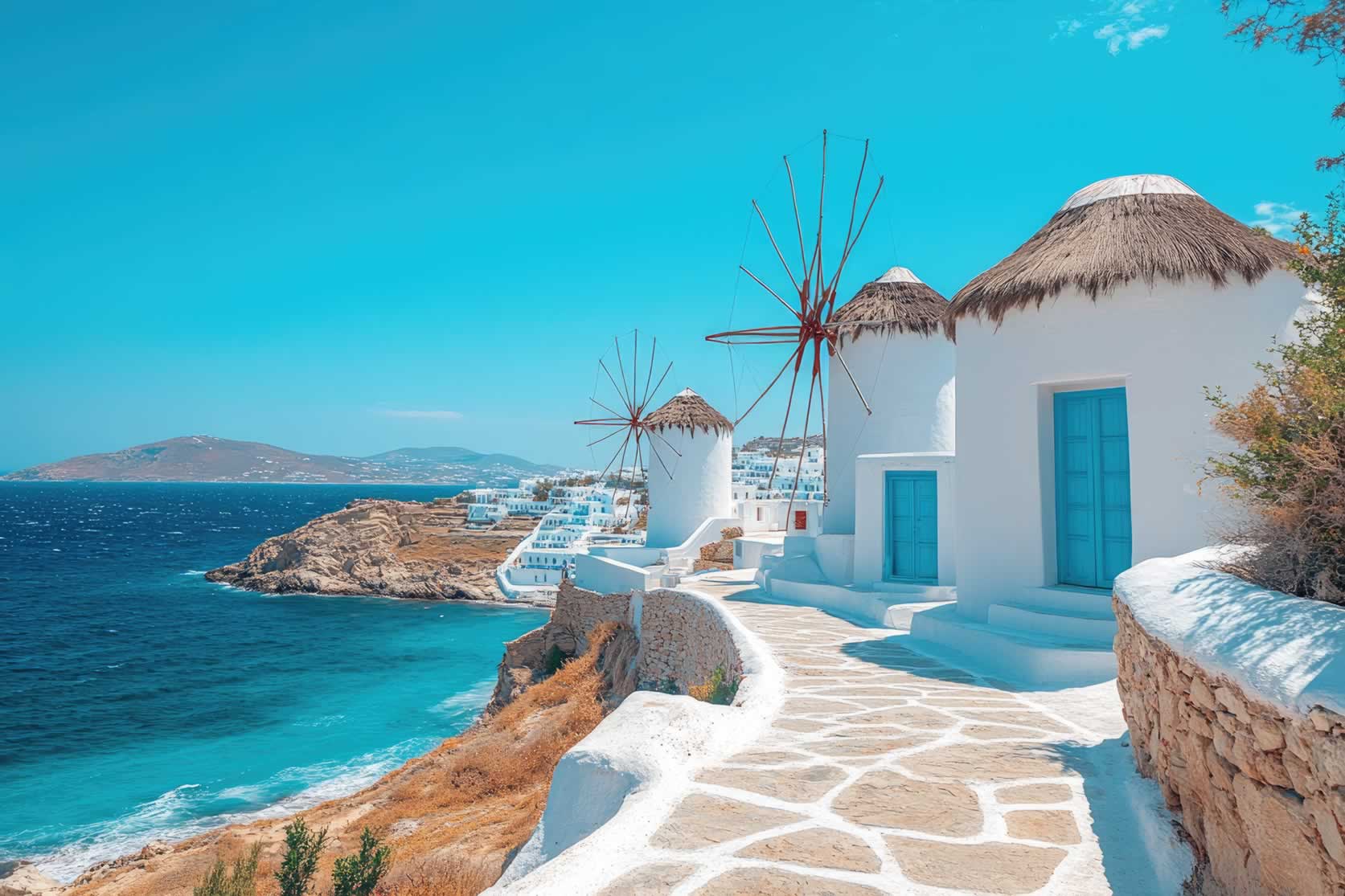 Mykonos has been known as the island of the winds, and it’s located in the heart of the Cyclades group. Its fame has spread across the world, as a cosmopolitan and luxurious holiday destination. Bathed in the bright sunlight of the Aegean by day, she dresses in charm and mystery by night, beckoning its visitors to dance and have fun in the beach bars and clubs, go for a shopping spree in luxury stores, visit its art venues, and -in short- have a truly memorable stay!